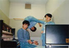 調律学校?では、朝の8時から夕方6時近くまで、ひたすらピアノと格闘していました。”ボックス”と呼ばれる3帖ほどの個室は太陽の当たらない地下にあり、そこにはアップライトピアノが1台、作業用の椅子が1脚、粗末な机?が1台それになぜかヘルメットが・・・・。怖いよ〜・・・。 |