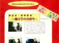 又,市立砂丘小学校の30周年記念行事では愛唱歌"未来へはばたけ”の作曲もたずさわりました。 |